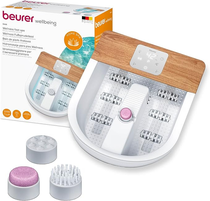A Beurer FB 65 egy prémium lábmasszírozó készülék, amely pezsgőfürdővel, vibrációs masszázzsal és vízmelegítéssel segít ellazítani a fáradt lábakat. A kapcsolható hangulatvilágítás és a beépített pedikűr állomás még kellemesebbé és praktikusabbá teszi a használatot. Nagy méretének köszönhetően akár 51-es cipőméretig is kényelmesen használható.