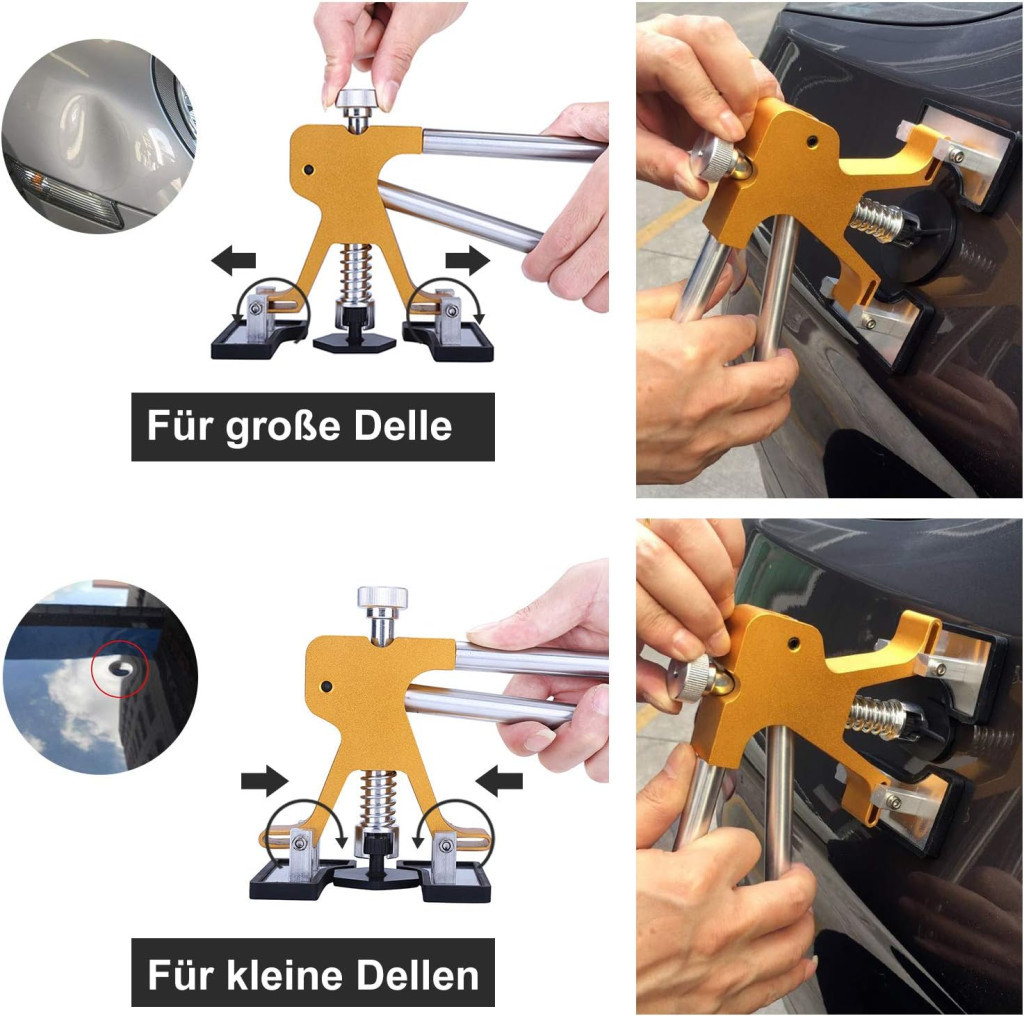 Golden Lifter húzóhíd: Aranyszínű, erős és könnyen kezelhető eszköz a horpadás kihúzásához.