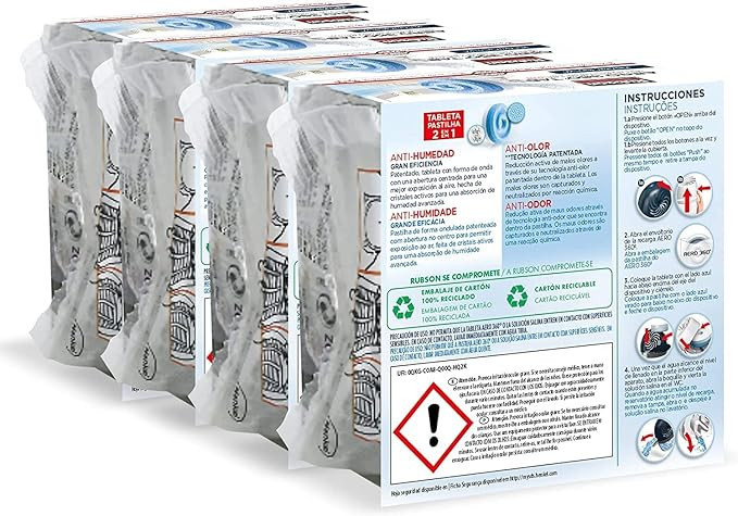 A csomag 4 darab, egyenként 450 g-os tablettát tartalmaz, amelyek akár 3 hónapig is működhetnek egy átlagos, 22 m²-es helyiségben, a környezeti viszonyoktól függően. A tabletták semleges illatúak, így nem hagynak kellemetlen szagnyomot, és teljesen biztonságosak használatra zárt terekben.